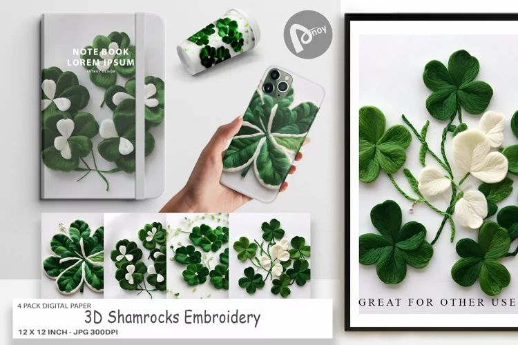 Similar Design Products to Digital Paper 3D Shamrocks Embroidery