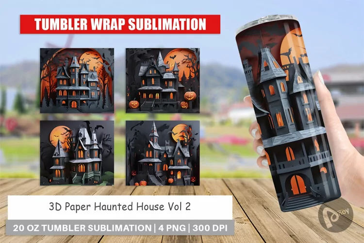 Similar Design Products to Tumbler Sublimation Wrap 3D Paper Haunted House