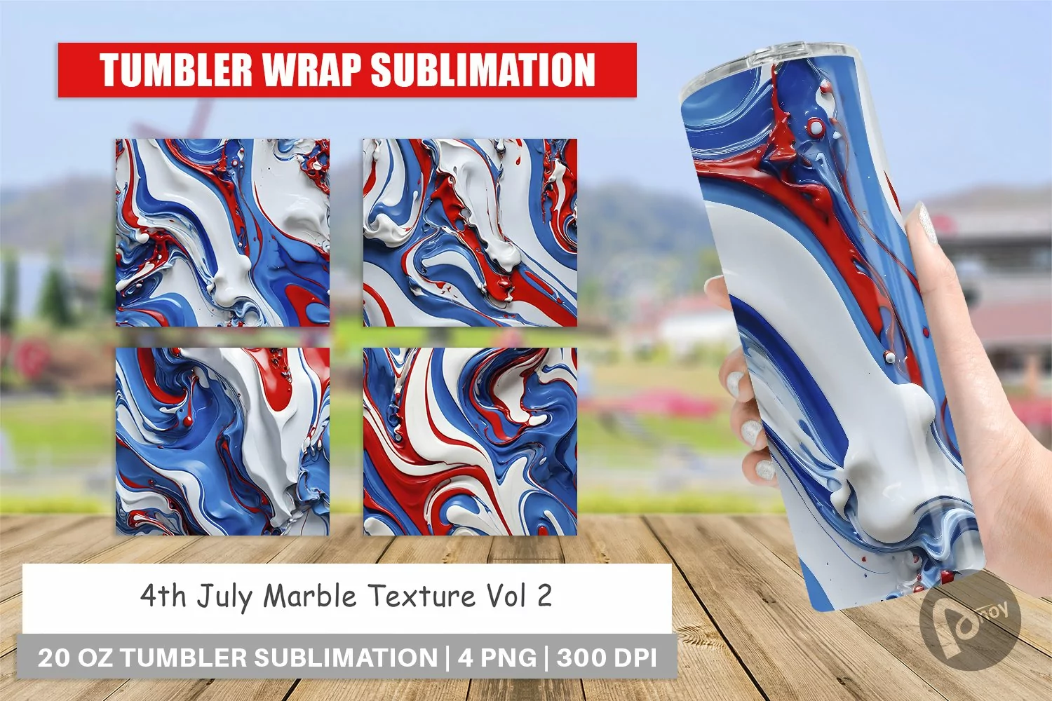 Tumbler Sublimation Wrap 4th July Marble Texture example image 1
