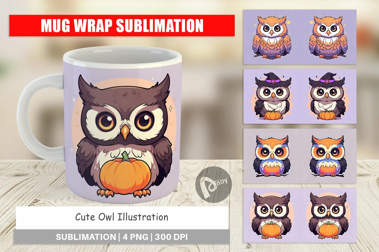 Mug Wrap Design Cute Owl Illustration