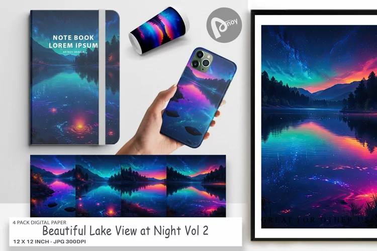 Similar Design Products to Digital Paper Beautiful Lake at Night