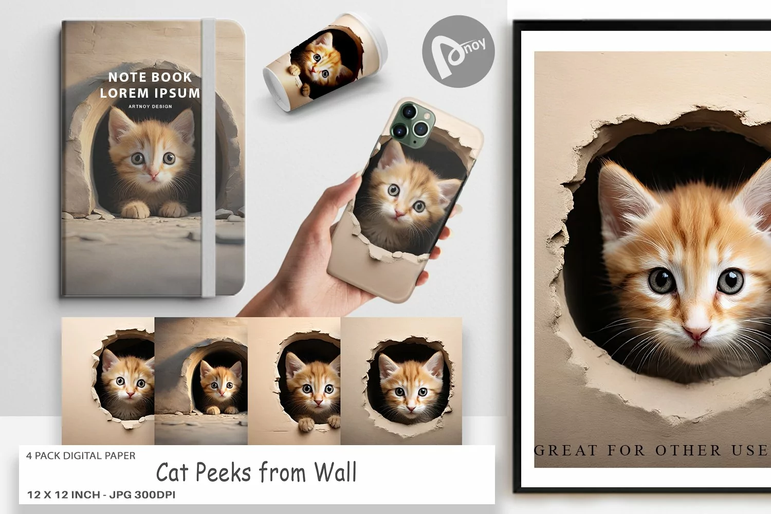 Digital Paper Background Scrapbook Paper Digital Paper Bundle Printable Digital Paper Sublimation Paper Background Cat Peeks From Wall Digital Paper Cat Peeks From Wall Background Cat Peeks From Wall Digital Paper Animal Peeks