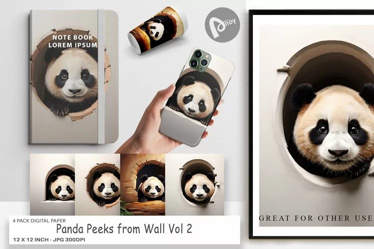 Digital Paper Background Scrapbook Paper Digital Paper Bundle Printable Digital Paper Sublimation Paper Background Panda Peeks From Wall Digital Paper Animal Peeks Digital Paper Panda Peeks From Wall Background Panda Peeks From Wall