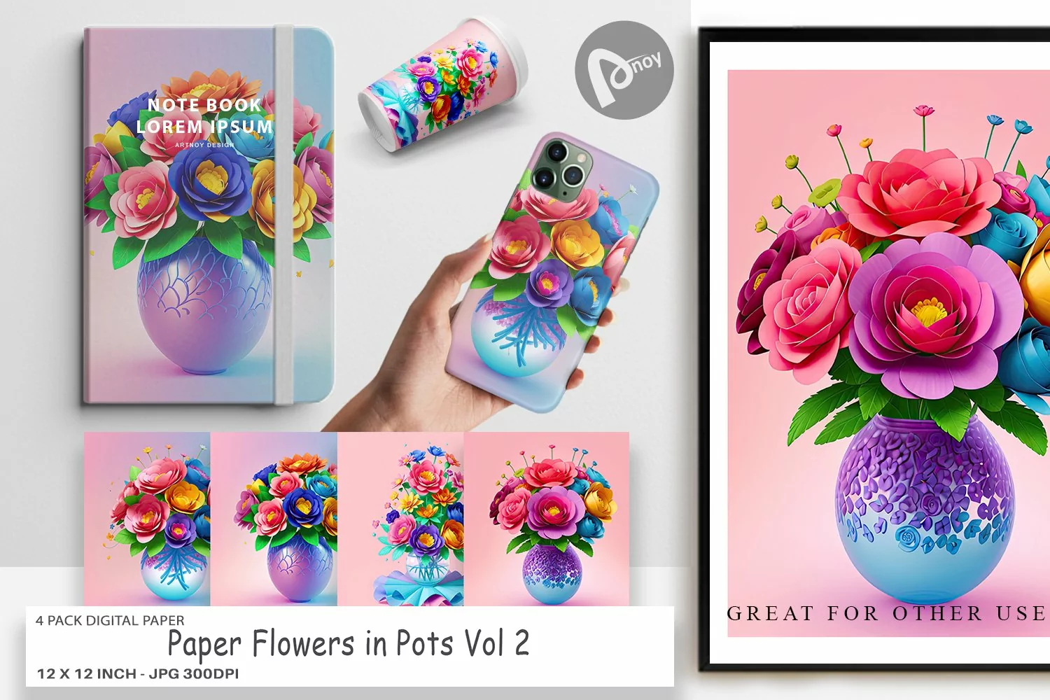 Similar Design Products to Digital Paper Paper Flowers in Pots