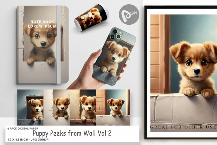 Digital Paper Background Scrapbook Paper Digital Paper Bundle Printable Digital Paper Sublimation Paper Background Puppy Peeks From Wall Digital Paper Animal Peeks Digital Paper Puppy Peeks From Wall Background Puppy Peeks From Wall
