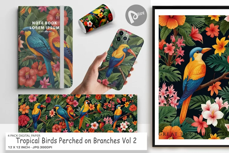 Similar Design Products to Digital Paper Tropical Birds Perched