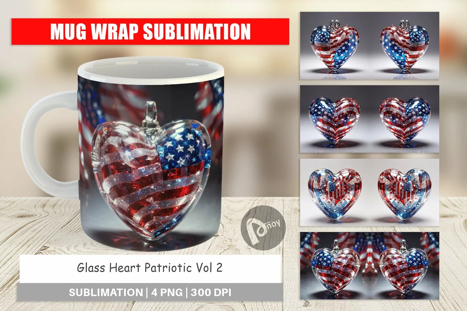 Mug Wrap Design Glass Heart Patriotic example image 1