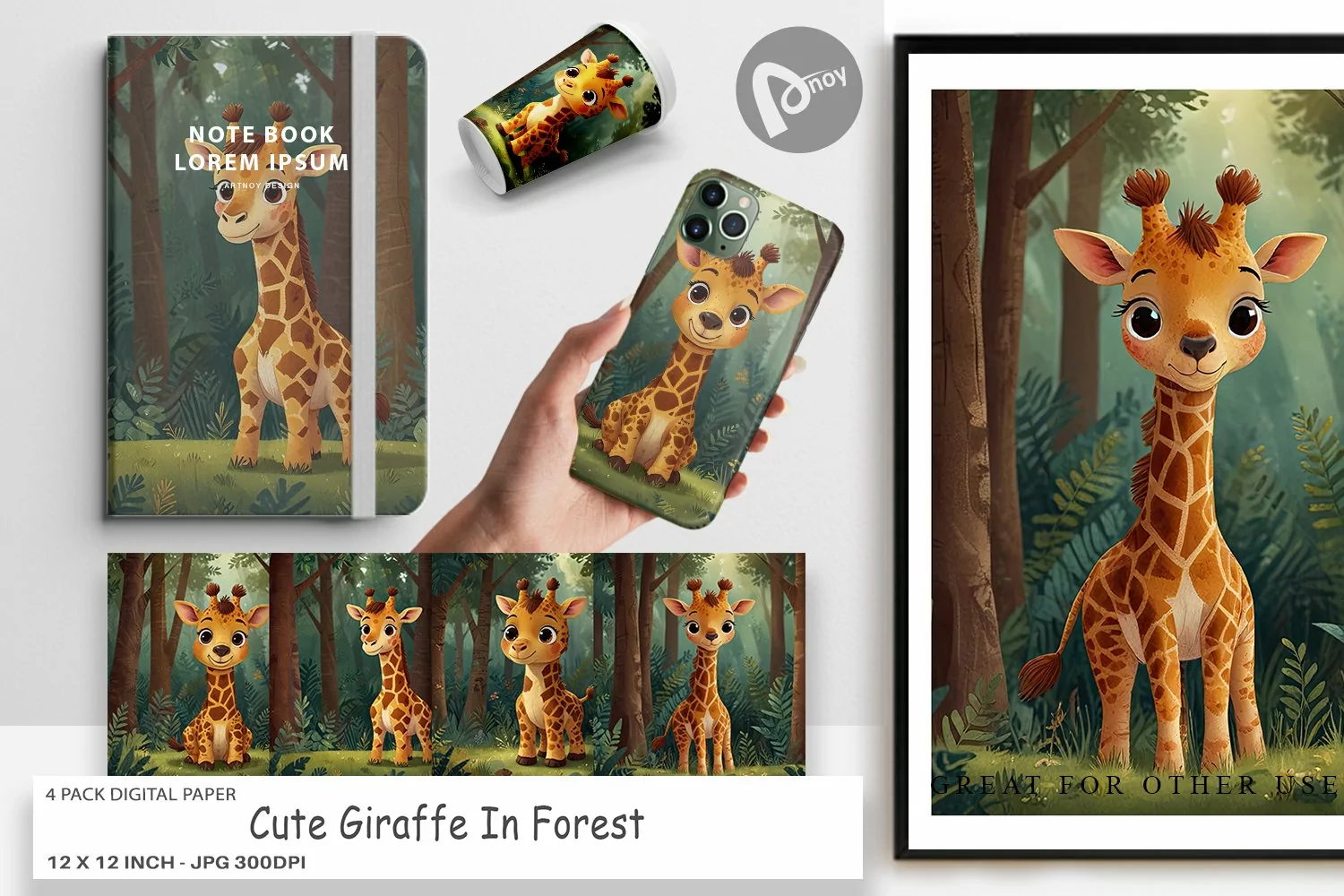 Similar Design Products to Digital Paper Cartoon Giraffe in Forest