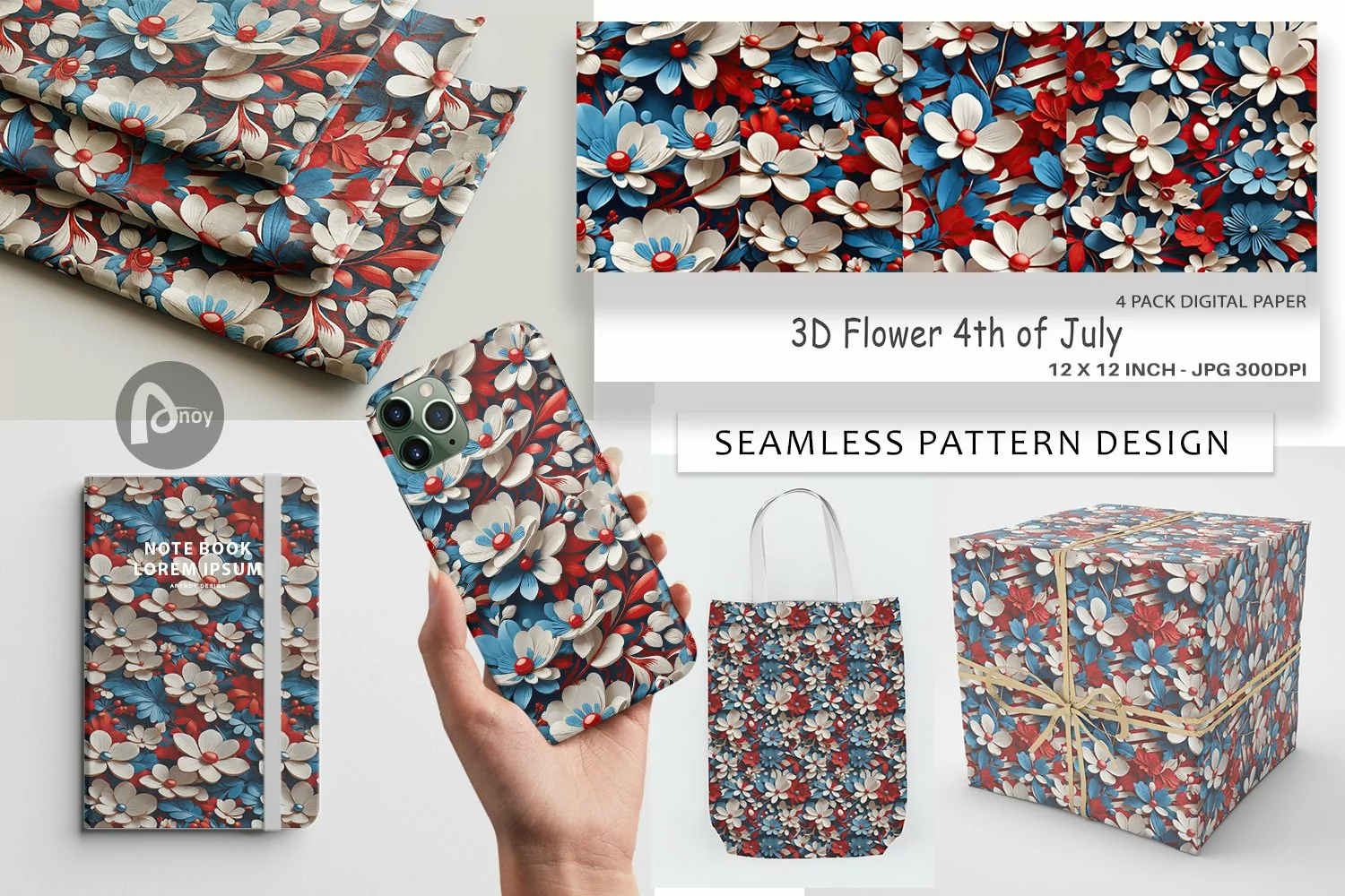 Similar Design Products to Digital Paper 3D Flower 4th of July