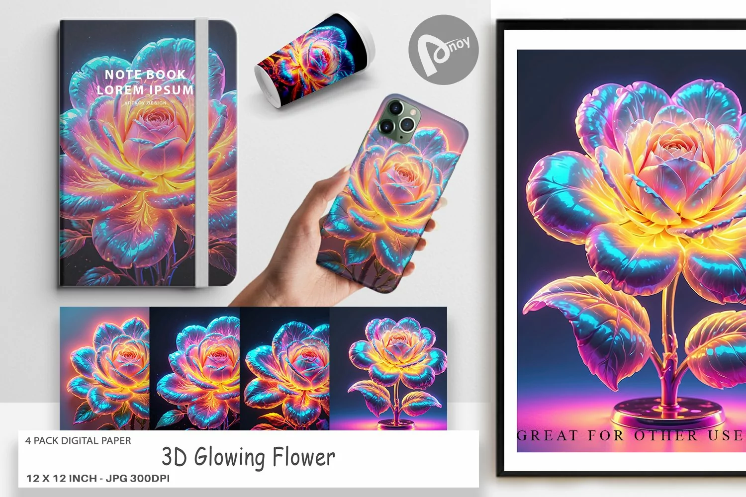 Digital Paper Background Scrapbook Paper Digital Paper Bundle Printable Digital Paper Sublimation Paper Background Digital Paper 3d Flower Digital Paper 3d Glowing Flower Background 3d Glowing Flower 3d Glowing Flower