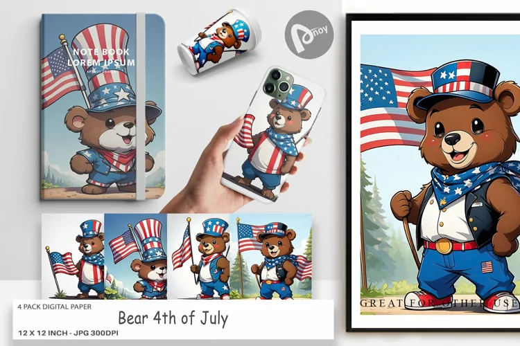 Digital Paper Background Scrapbook Paper Digital Paper Bundle Printable Digital Paper Bear 4th Of July Sublimation Paper Background Digital Paper Bear 4th Of July Background Bear 4th Of July Digital Paper Bear Patriotic