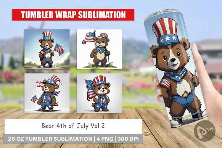 Tumbler Wrap Bear 4th of July