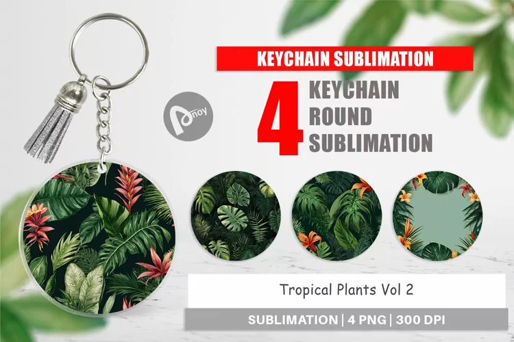 Tropical Plants Sublimation Design Sublimation Background Bundle Keychain Sublimation Round Keychain Keychain Bundle Keychain Sublimation Background Keychain Tropical Keychain Tropical Plants Keychain Sublimation Tropical Plants