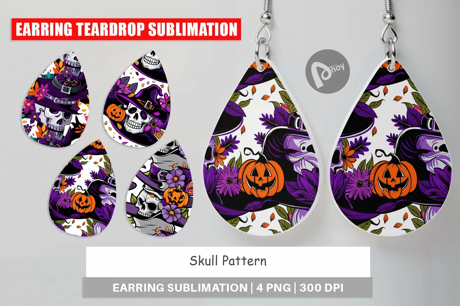 Skull Pattern Earring Halloween Pattern Earring Teardrop Skull Pattern Earring Sublimation Skull Pattern
