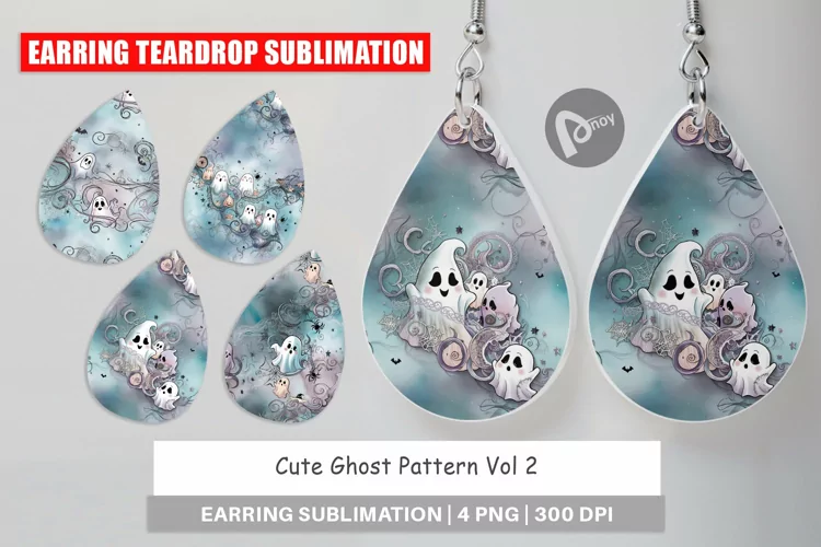 Cute Ghost Pattern Earring Teardrop Cute Ghost Pattern Earring Sublimation Cute Ghost Pattern Earring Halloween Pattern