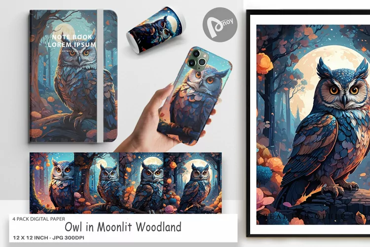 Similar Design Products to Digital Paper Moonlit Woodland Owl