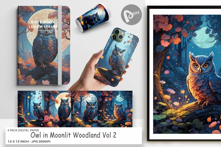 Similar Design Products to Digital Paper Moonlit Woodland Owl