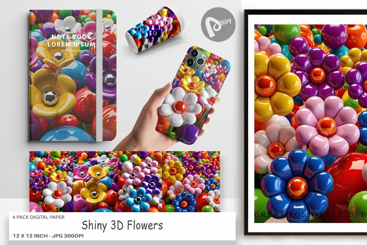 Digital Paper Shiny 3D Flowers