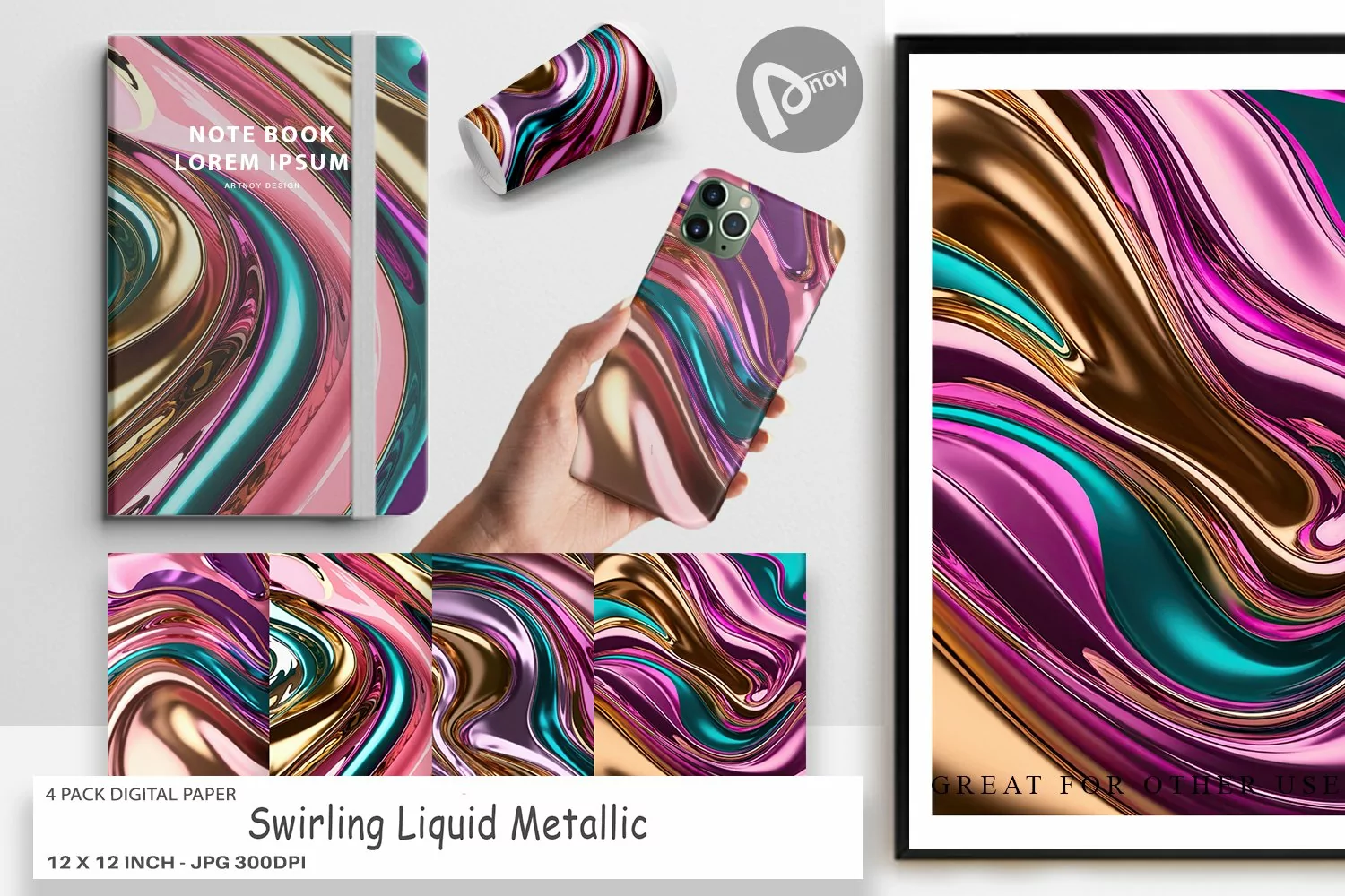 Similar Design Products to Digital Paper Swirling Liquid Metallic