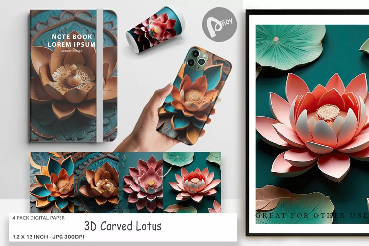 Similar Design Products to Digital Paper 3D Carved Lotus