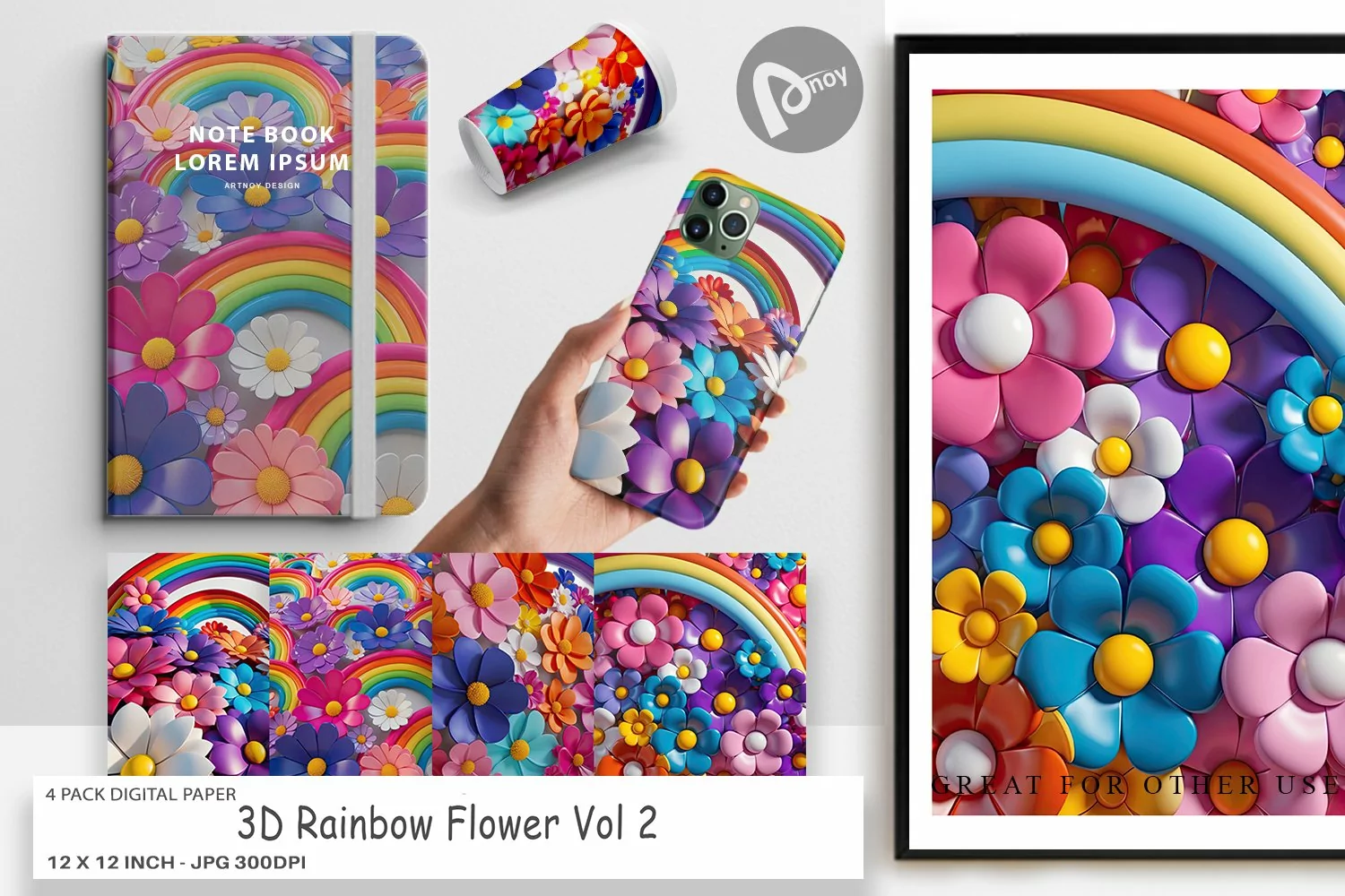 Similar Design Products to Digital Paper 3D Rainbow Flower