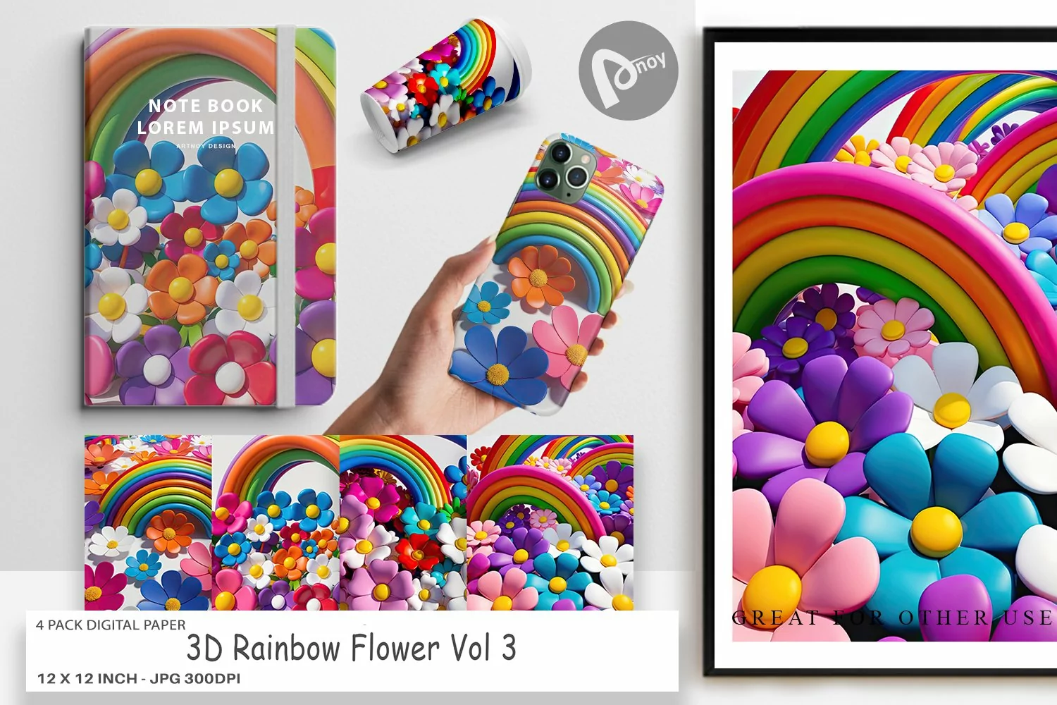 Similar Design Products to Digital Paper 3D Rainbow Flower