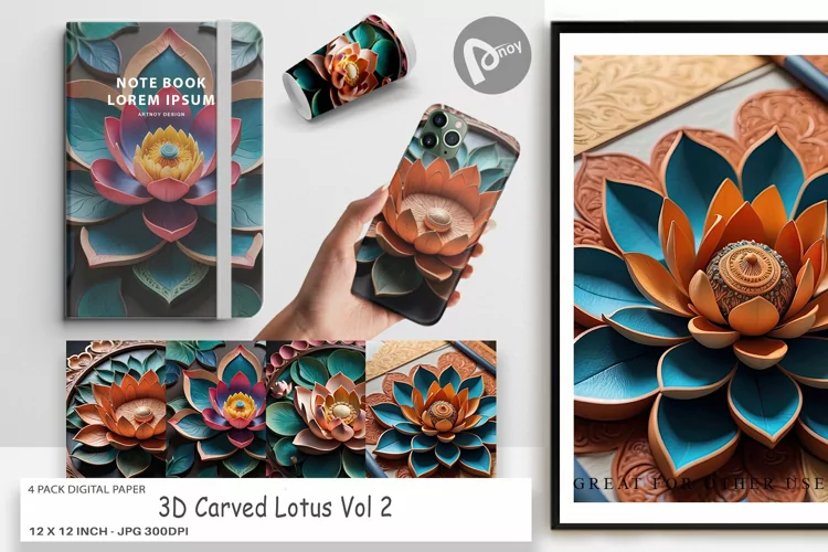 Similar Design Products to Digital Paper 3D Carved Lotus