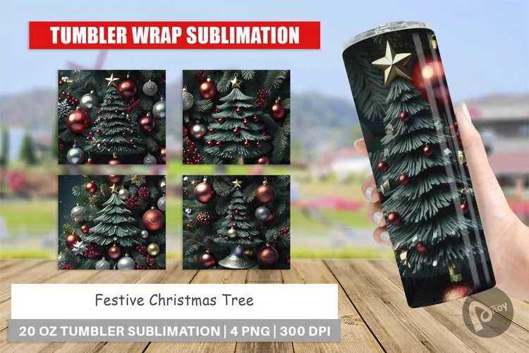 Tumbler Bundle Tumbler Wrap 20 Oz Skinny Tumbler Sublimation Tumbler Wrap Tumbler Sublimation Tumbler Sublimation Design Tumbler Christmas Festive Christmas Tree Tumbler Wrap Festive Christmas Tree Tumbler Sublimation Festive Christmas Tree