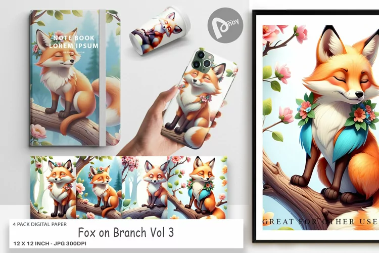 Digital Paper Background Scrapbook Paper Digital Paper Bundle Printable Digital Paper Sublimation Paper Background Digital Paper Fox Fox On Branch Digital Paper Fox On Branch Background Fox On Branch