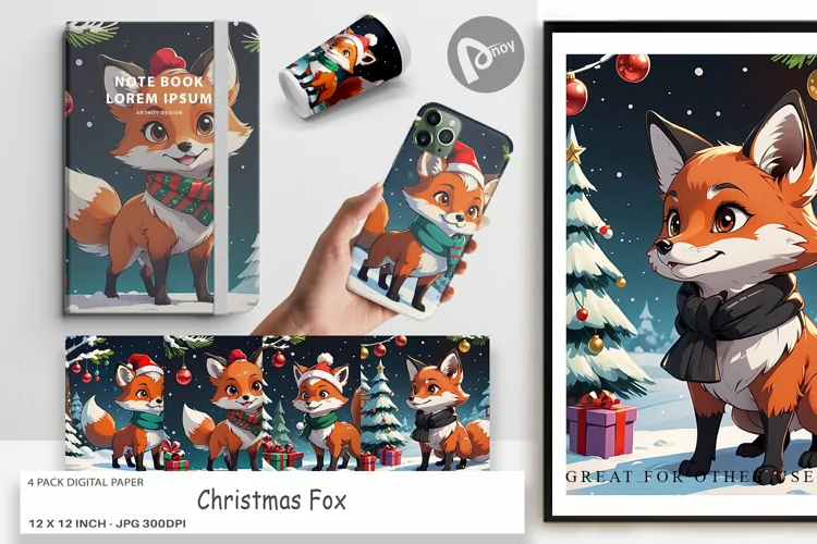 Digital Paper Cartoon Christmas Fox