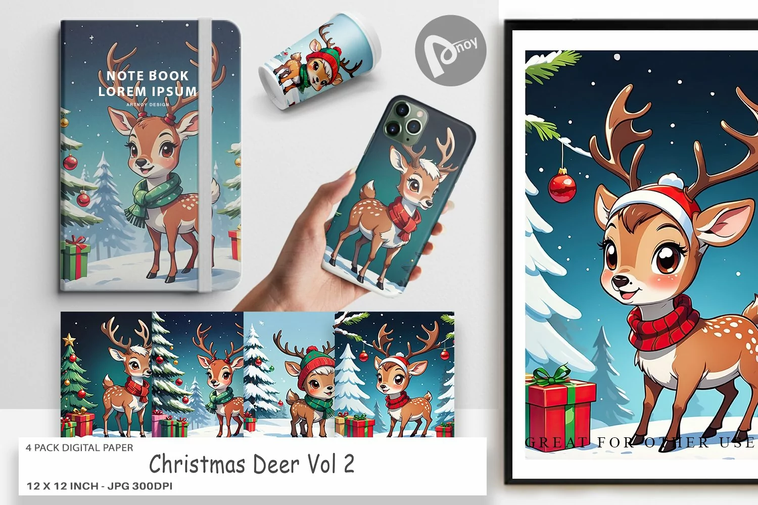Similar Design Products to Digital Paper Cartoon Christmas Deer
