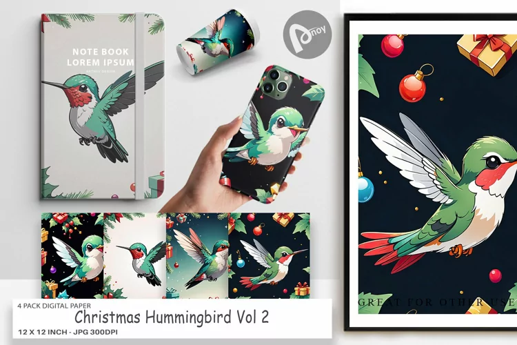 Similar Design Products to Digital Paper Cartoon Christmas Hummingbird