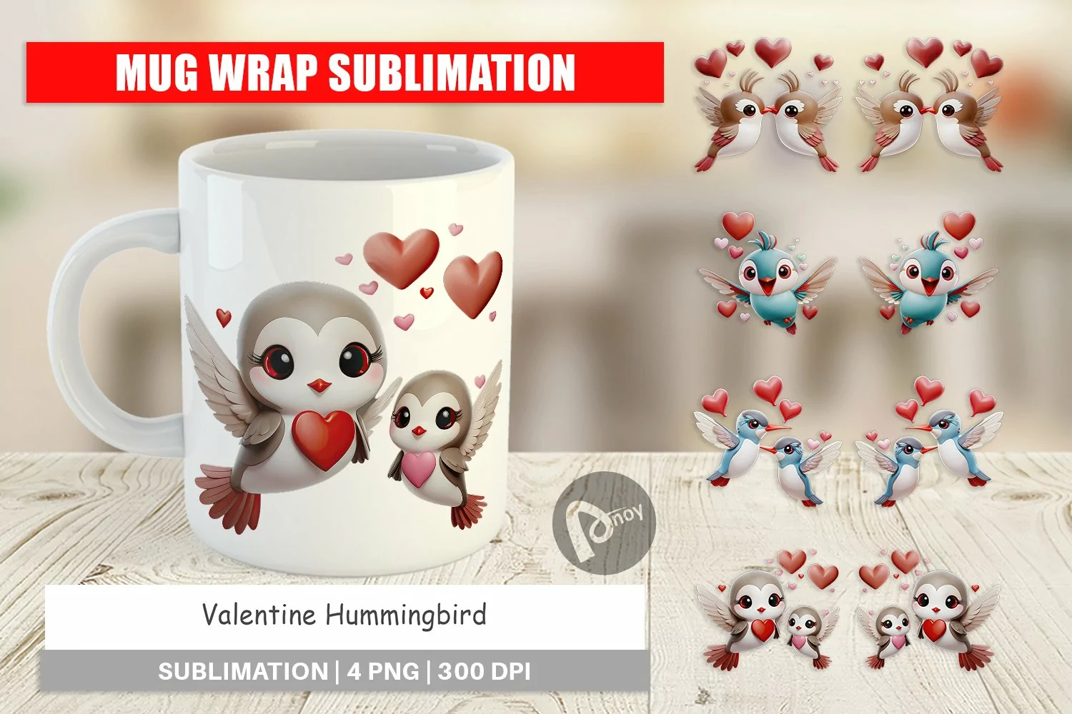 Mug Wrap Design Valentine Hummingbird