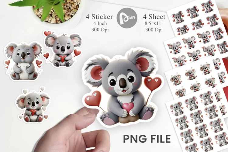 Valentine Png Stickers Printable Sticker Design Sticker Png Sticker Template Valentine Sticker Stickers For Kids Valentine Koala Png Valentine Koala Sticker Valentine Koala Printable