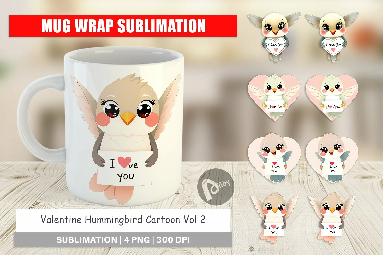 Mug Wrap Design Valentine Hummingbird Cartoon example image 1