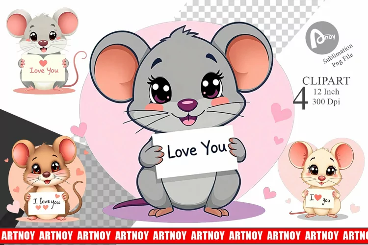 Similar Design Products to Valentine Mouse Cartoon Clipart
