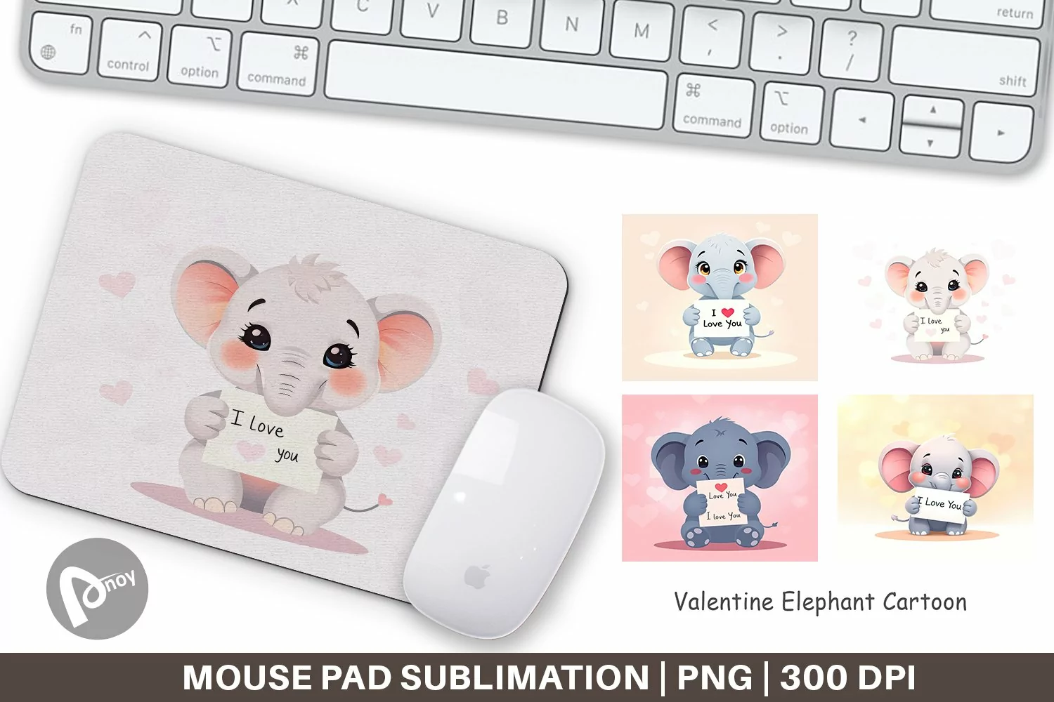 Mouse Pad Valentine Elephant Cartoon example image 1
