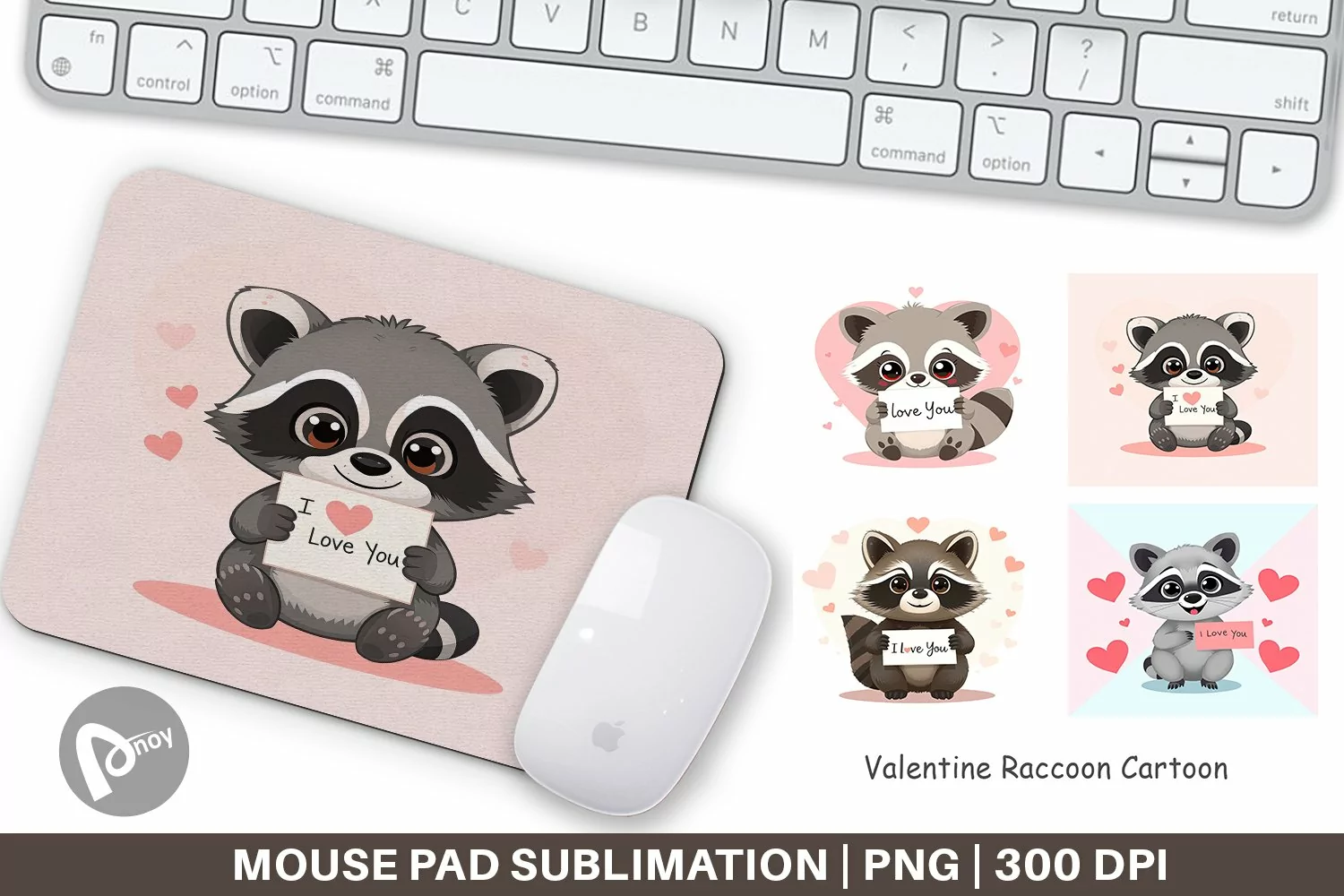 Mouse Pad Valentine Raccoon Cartoon example image 1