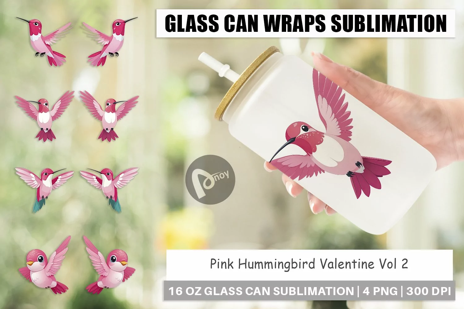 Glass Can Wraps Pink Hummingbird Valentine example image 1