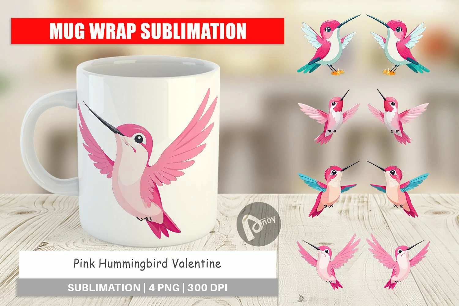 Mug Wrap Design Pink Hummingbird Valentine example image 1