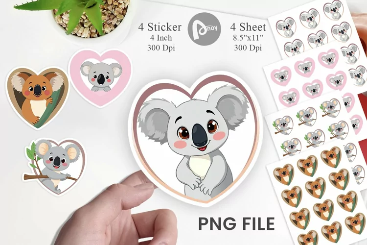 Valentine Png Stickers Printable Sticker Design Sticker Png Sticker Template Stickers For Kids Valentine Animal Sticker Heart Koala Png Heart Koala Sticker Heart Koala Printable