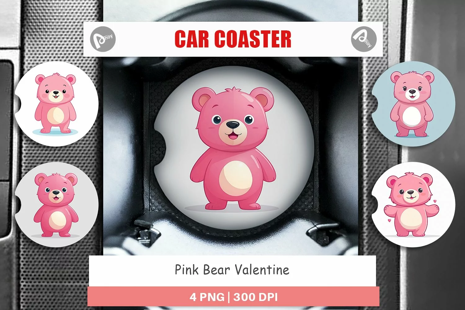 Car Coaster Car Coaster Png Car Coaster Template Coaster Design Pink Bear Car Coaster Sublimation Design Animal Valentine Coaster Round Car Coaster Pink Bear Coaster Sublimation Pink Bear