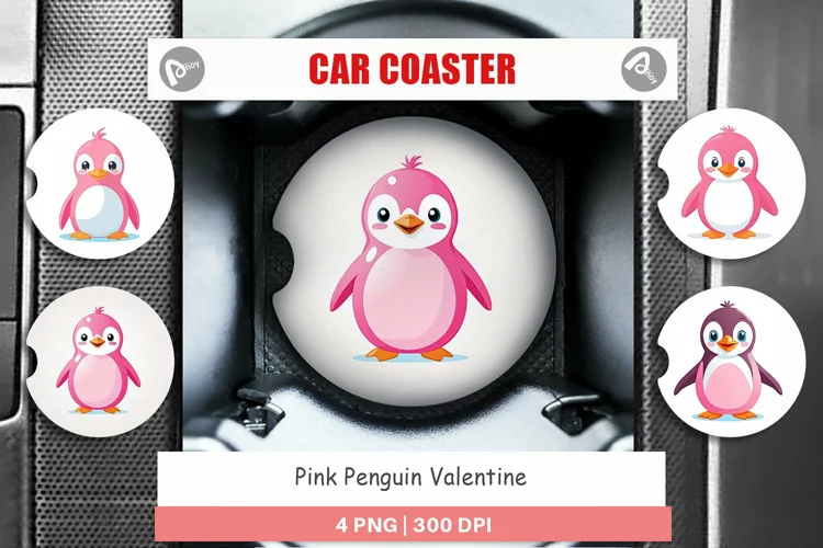 Car Coaster Pink Penguin Valentine example image 1
