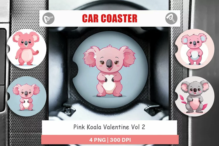 Car Coaster Pink Koala Valentine example image 1