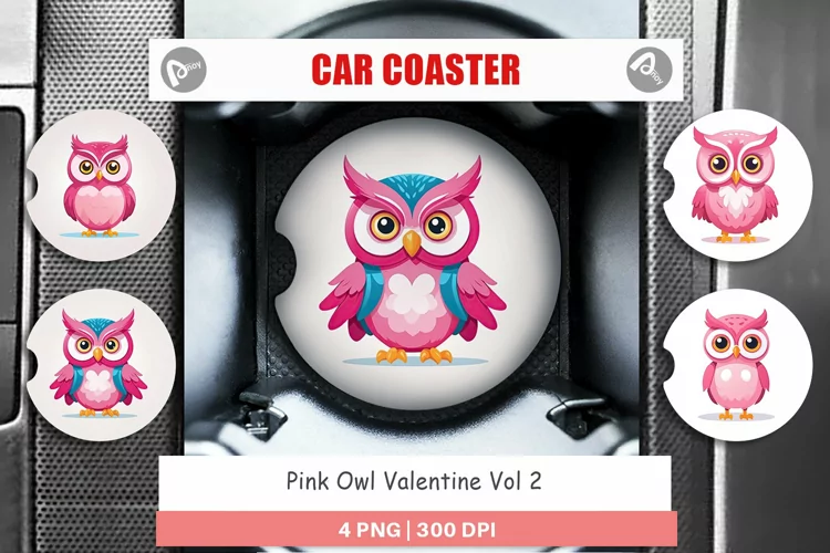 Pink Owl Car Coaster Car Coaster Png Car Coaster Template Coaster Design Car Coaster Sublimation Design Animal Valentine Coaster Round Car Coaster Pink Owl Coaster Sublimation Pink Owl