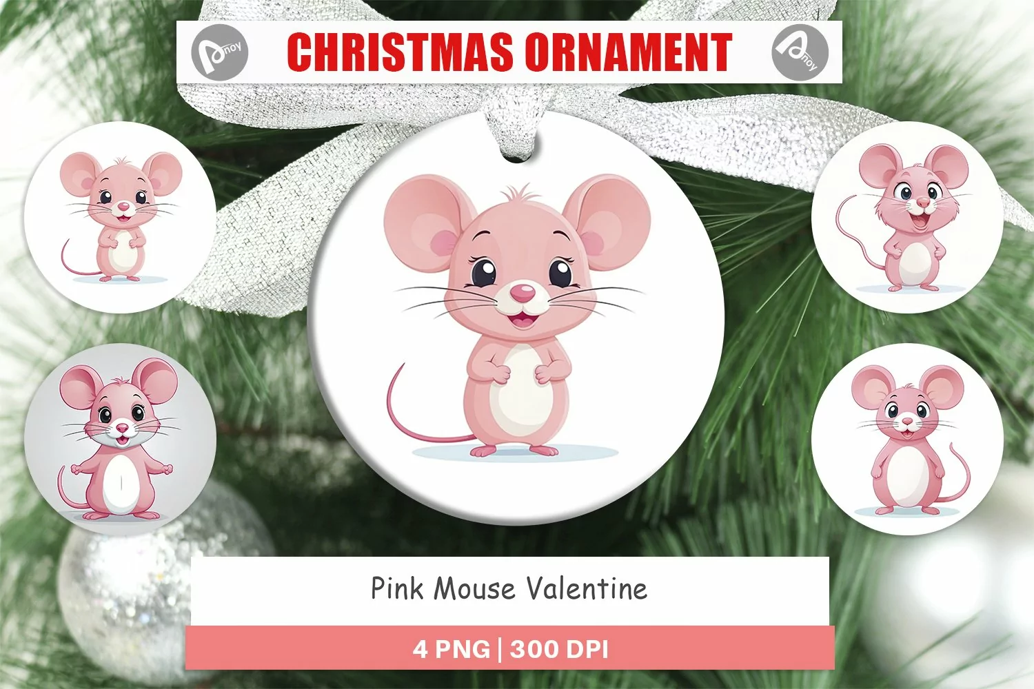 Christmas Ornament Round Ornament Ornament Design Pink Mouse Ornament Sublimation Ornament Bundle Round Christmas Ornament Animal Valentine Christmas Ornament Pink Mouse Ornament Sublimation Pink Mouse