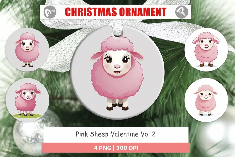 Christmas Ornament Round Ornament Ornament Design Ornament Sublimation Ornament Bundle Round Christmas Ornament Animal Valentine Pink Sheep Christmas Ornament Pink Sheep Ornament Sublimation Pink Sheep