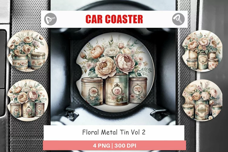 Car Coaster Floral Metal Tin example image 1