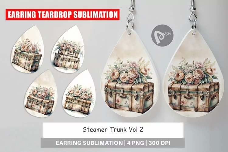 Earrings Earrings Bundle Vintage Watercolor Sublimation Earrings Earring Teardrop Earring Sublimation Designs Sublimation Earring Teardrop Vintage Trunk Earring Teardrop Vintage Trunk Earring Sublimation Vintage Trunk