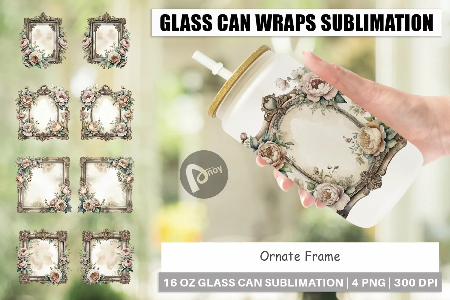 Vintage Frame Watercolor Vintage Sublimation Design Glass Can Wrap Libbey Glass Beer Can Glass Glass Can Sublimation 16oz Glass Can Wrap Glass Can Wrap Vintage Frame Glass Can Sublimation Vintage Frame